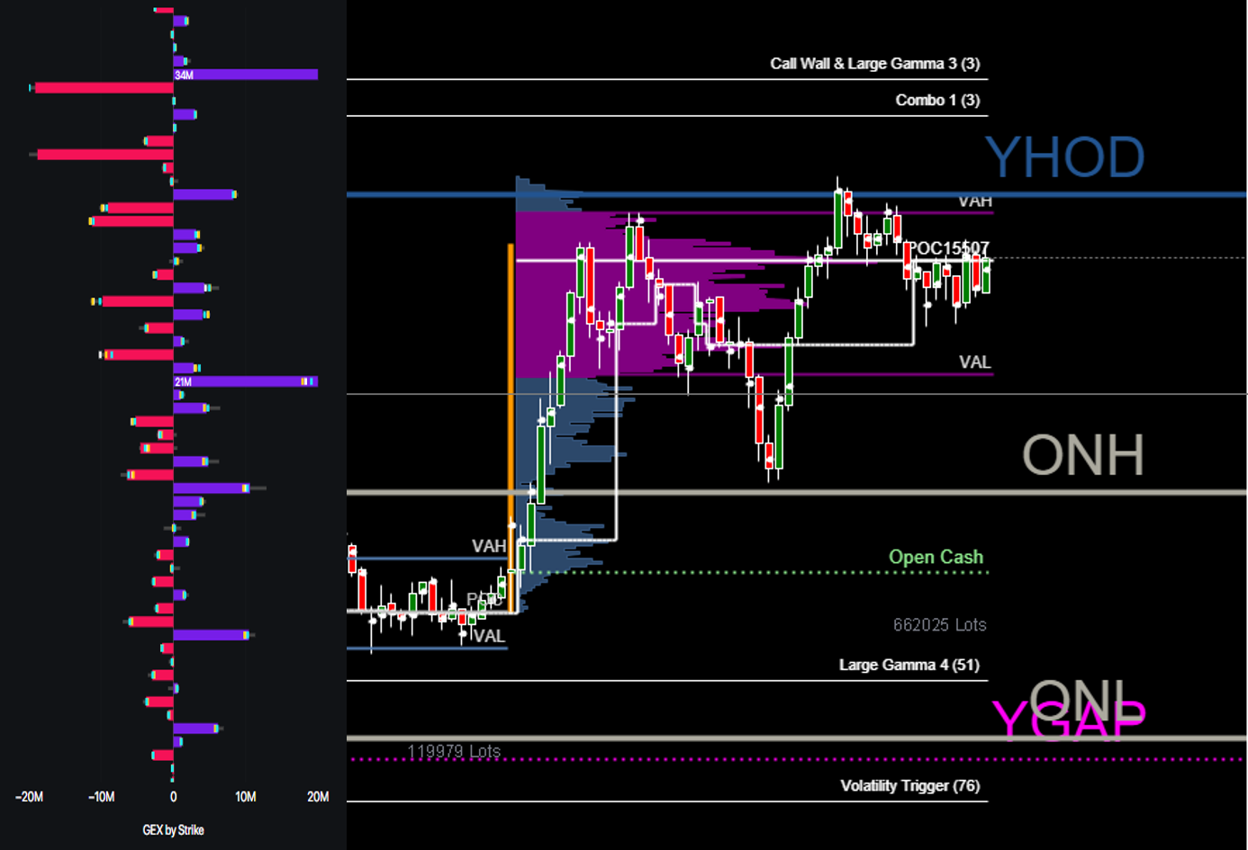 de Volumen, Order Flow y Niveles Gammas